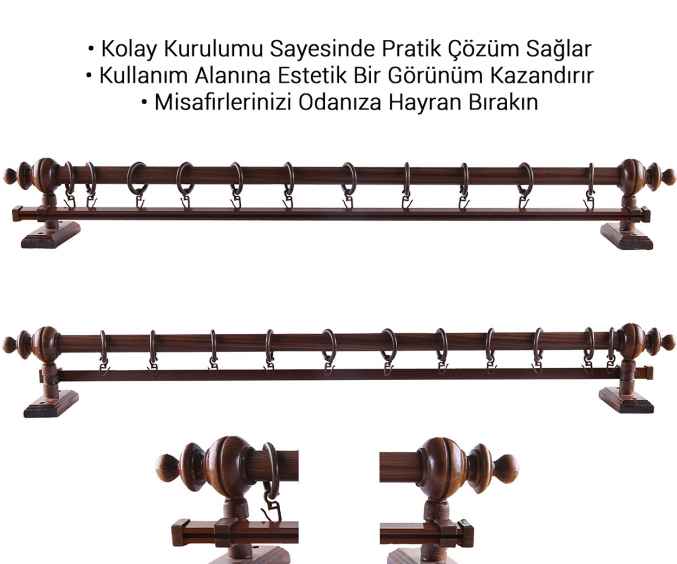 Perdejim Ceviz Ahşap Rustik Perde Askısı - Raylı Rustik Borusu