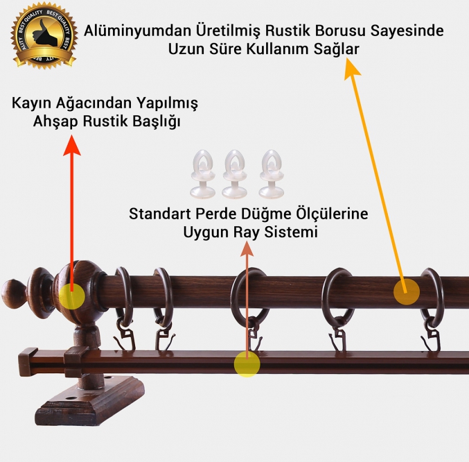 Çift Raylı rustik seçimini üç farklı perde kullanımlarında sipariş verilmelidir.