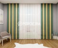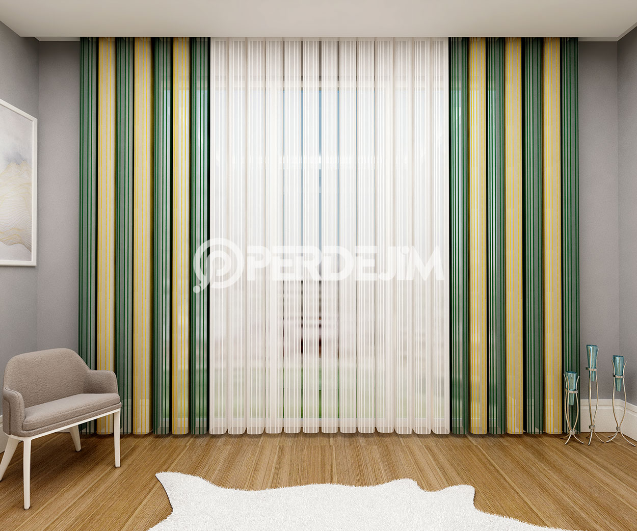 Koyu Yeşil & Hardal Sarısı Dikey Tül Perde