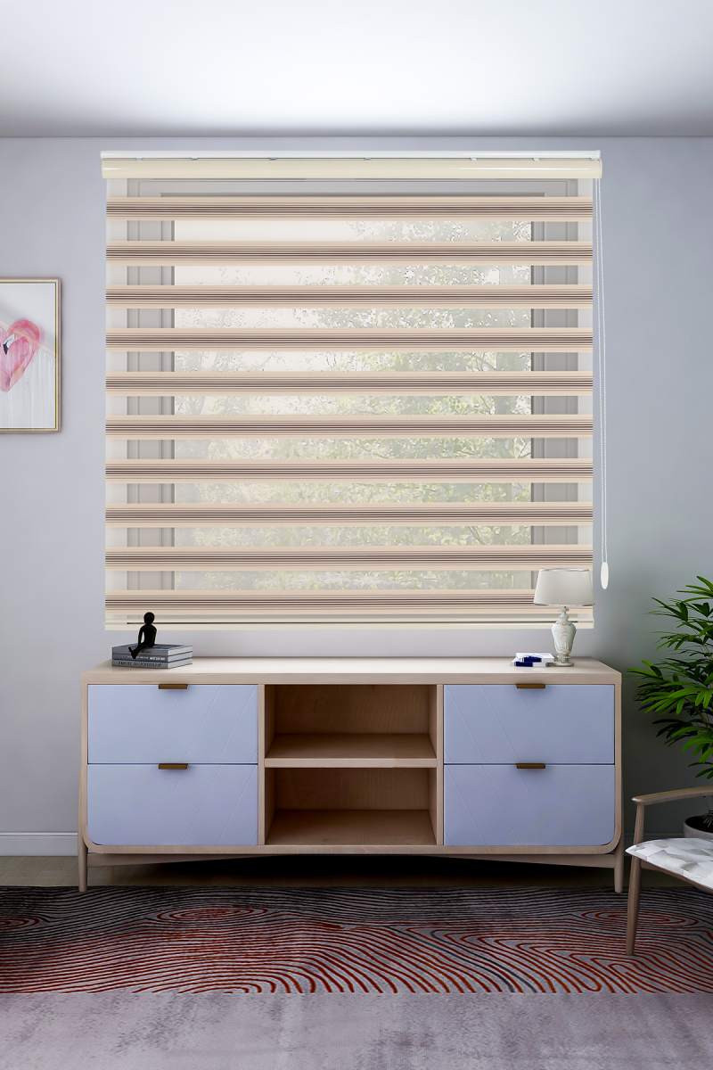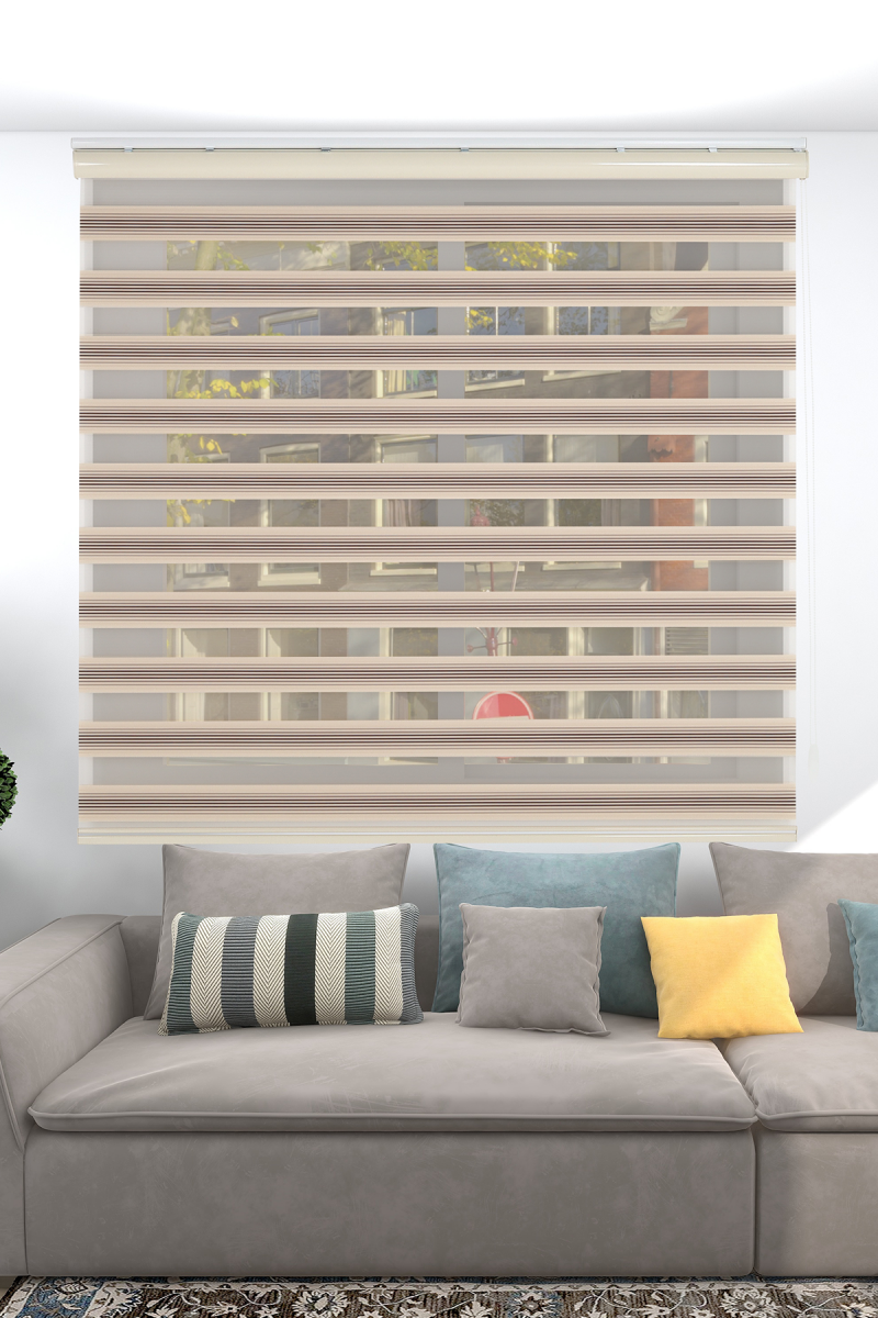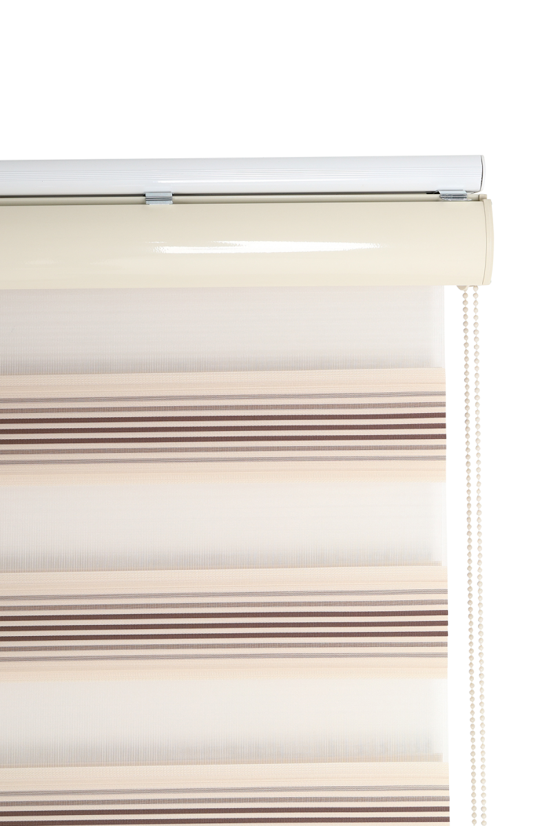 Orta Pliseli Krem Açık Kahve Geçişli Zebra Perde