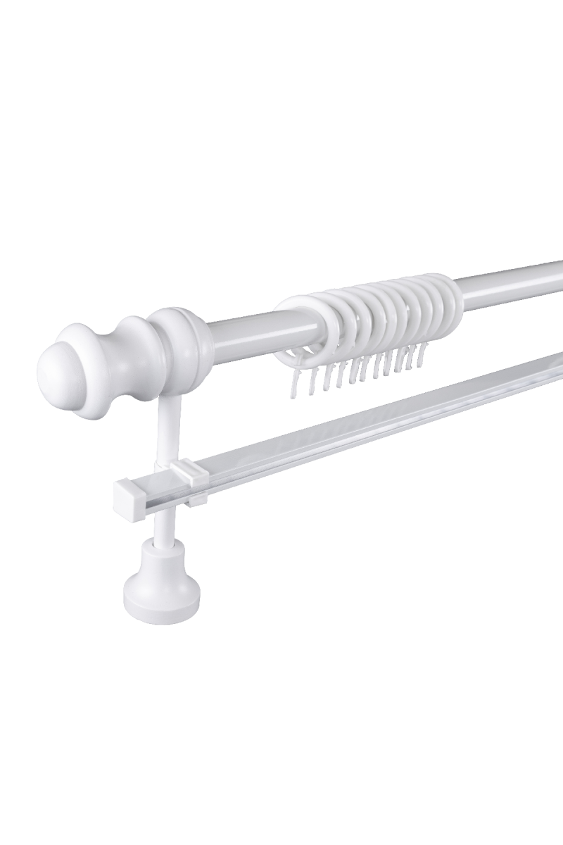 Demonte Lale Başlıklı Beyaz Ahşap Rustik Perde Askısı
