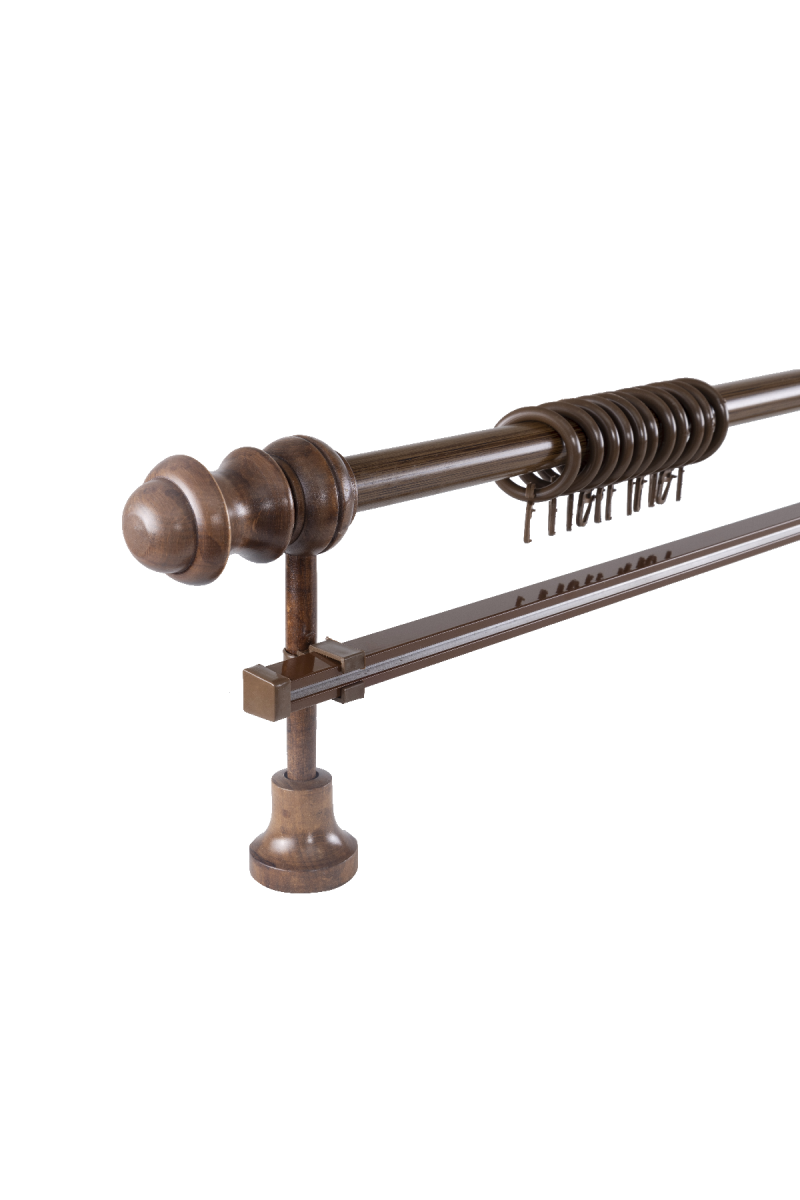 Demonte Lale Başlıklı Ceviz  Ahşap Rustik Perde Askısı