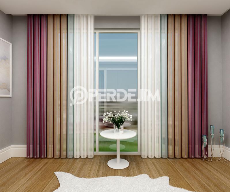Bordo & Kahverengi & Camgöbeği Dikey Tül Perde