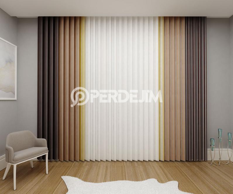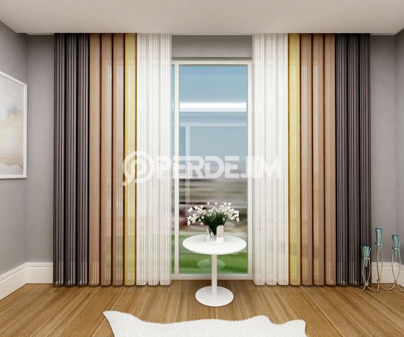Koyu Kahverengi & Kahverengi & Hardal Sarısı Dikey Tül Perde