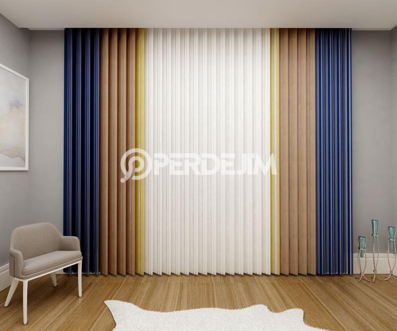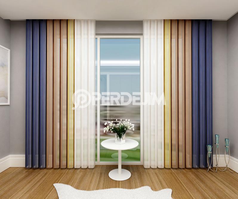 Lacivert & Kahverengi & Hardal Dikey Tül Perde