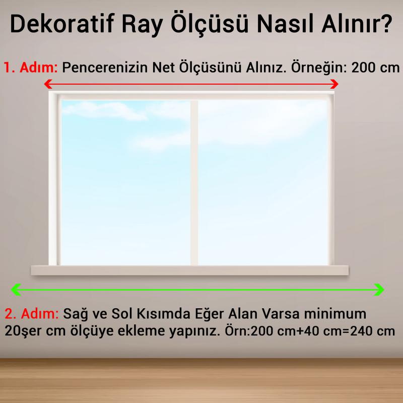 • Çift Raylı rustik seçimini iki farklı perde kullanımlarında sipariş verilmelidir.
