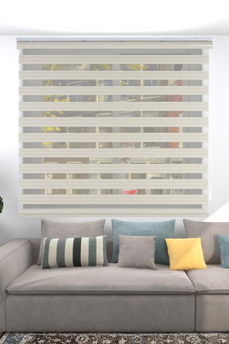 Keten Krem Zemine Ekru Pileli Zebra Perde
